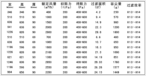 “梓凈”液槽式無隔板高效過濾器標(biāo)準(zhǔn)技術(shù)參數(shù):