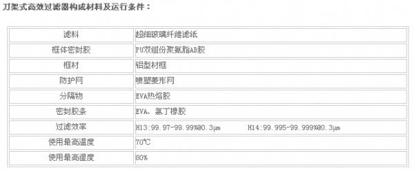 刀架式高效過濾器構成材料及運行條件