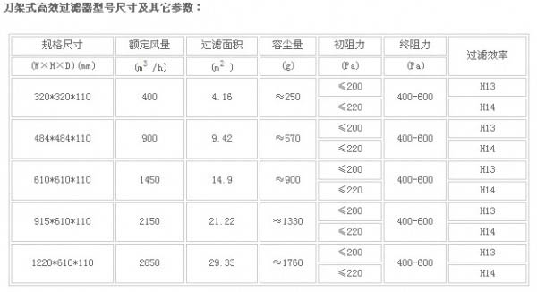 刀架式高效過濾器技術參數