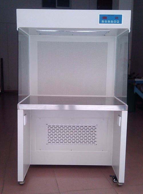水平流超凈工作臺是凈化工作臺設有初效、高效兩級過濾網。風機底部將空氣吸入并經初效過濾器、高效過濾器,過濾后的潔凈空氣在整個出風面以0.45m/s±20的風速水平勻速送出。