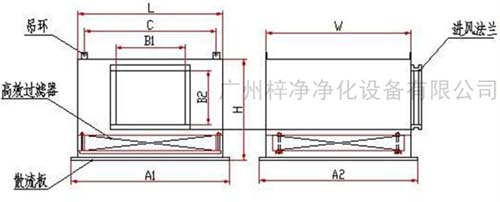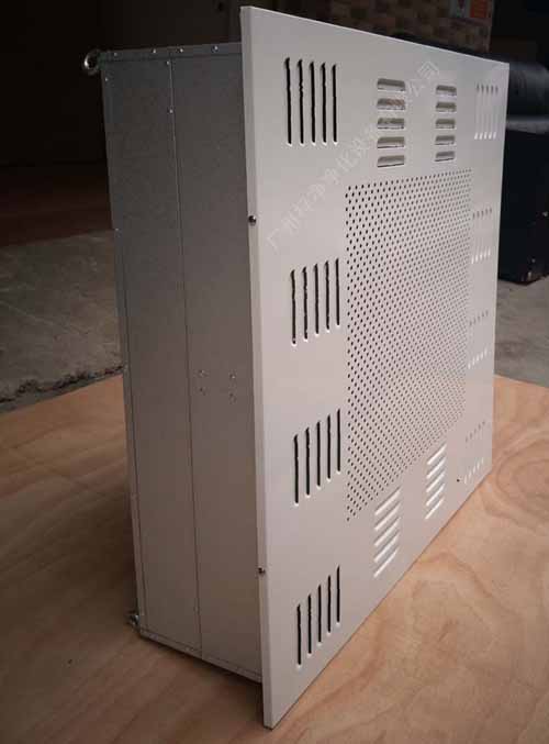 A、高效送風口靜壓箱體,材質有冷軋鋼板(A3板)與不銹鋼板。箱體是用作吊在天花上與四周庫板相結合密封,也是高效送風口四件套主體。