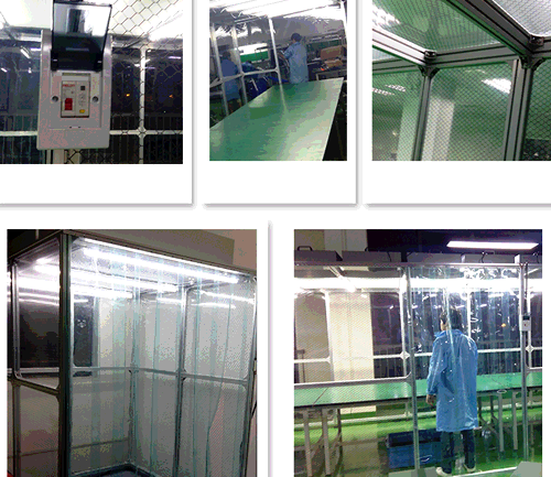 2、防靜電垂簾:四周圍用防靜電垂簾(或鋼化玻璃),防靜電效果好、透明度高、網格清晰、柔韌度好、不變形、不易老化;