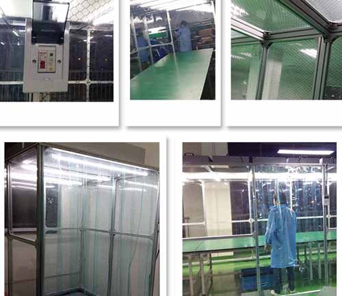 2、防靜電垂簾:四周圍用防靜電垂簾(或亞克力板),防靜電效果好、透明度高、網格清晰、柔韌度好、不變形、不易老化;