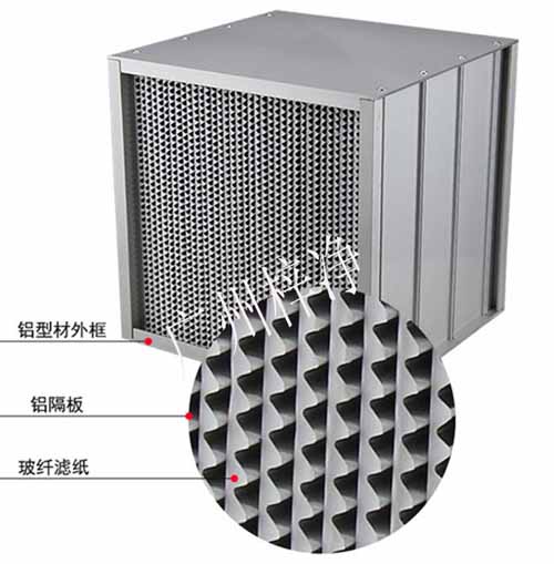 鋁隔板高效過濾器主要用于0.5μm以下的空氣懸浮顆粒,作為各種過濾系統(tǒng)的未端過濾;