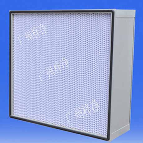 鋁框有隔板高效過濾器隔板:波紋型鋁箔或鍍乙烯隔板。采用超細玻璃纖維高密度濾紙。