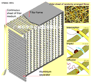 高效過濾器的材料主要采用超細玻璃纖維紙作濾料,膠板紙、鋁箔板等材料折疊作分割板,新型聚氨酯密封膠密封,并以鍍鋅板、不銹鋼板、鋁合金型材為外框制成。