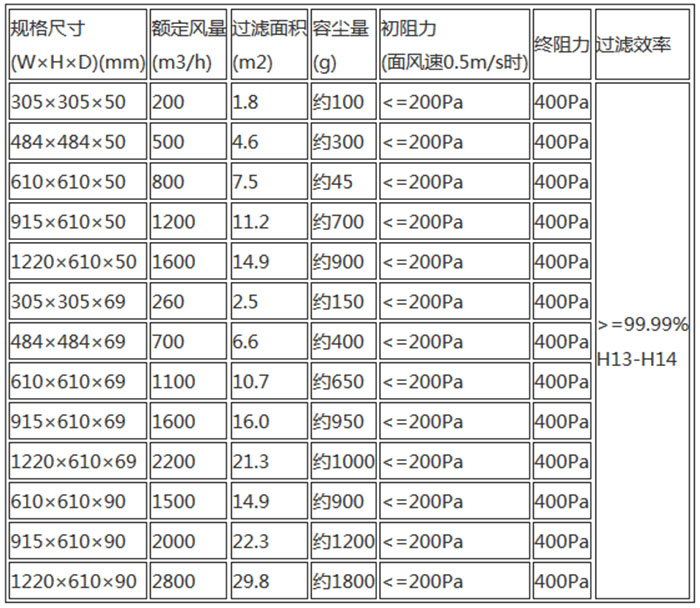 高效空氣過濾器規(guī)格尺寸及技術(shù)參數(shù)