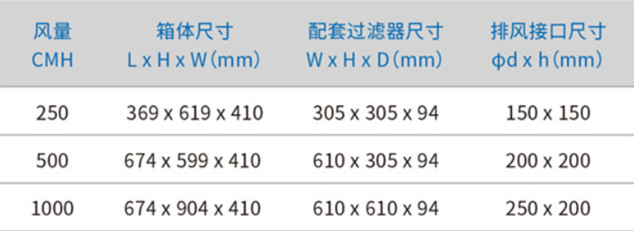 高效排風(fēng)口及過濾器標(biāo)準(zhǔn)尺寸參數(shù):