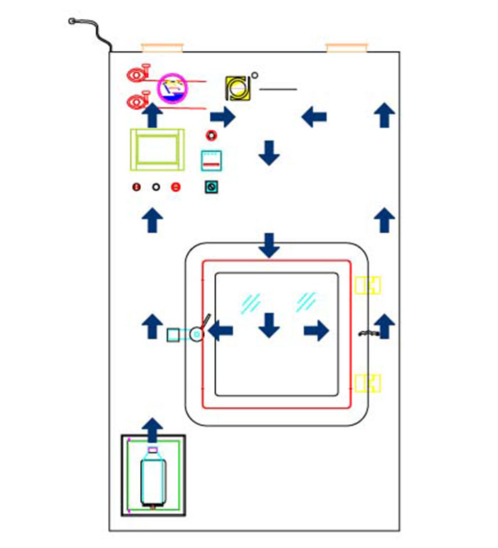 除殘留——停止輸入過氧化氫氣體,將滅菌系統切換到除殘留系統,使隔離器內的過氧化氫氣體循環通過催化器進行分解,降低過氧化氫濃度在10PPM以下,然后通過通風以達到殘留值不大于1ppm。